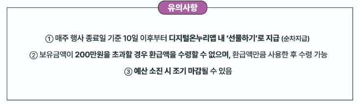 환급 대상이 되면 익월 중 온누리상품권 형태로 자동 지급되며, 별도의 신청 절차는 없습니다.