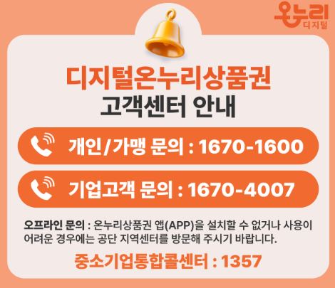 - 지급 수단: 모바일/지류/카드형 온누리상품권