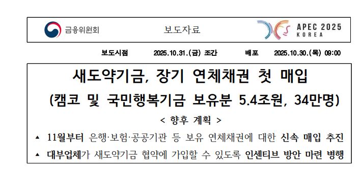 - 장기 연체자 : 2018년 6월 19일 이전부터 연체가 발생하여 현재까지 7년 이상 갚지 못한 분