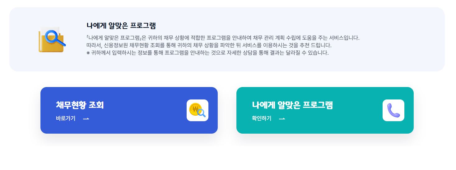 - 채무조정 대상 여부 확인 메뉴 클릭